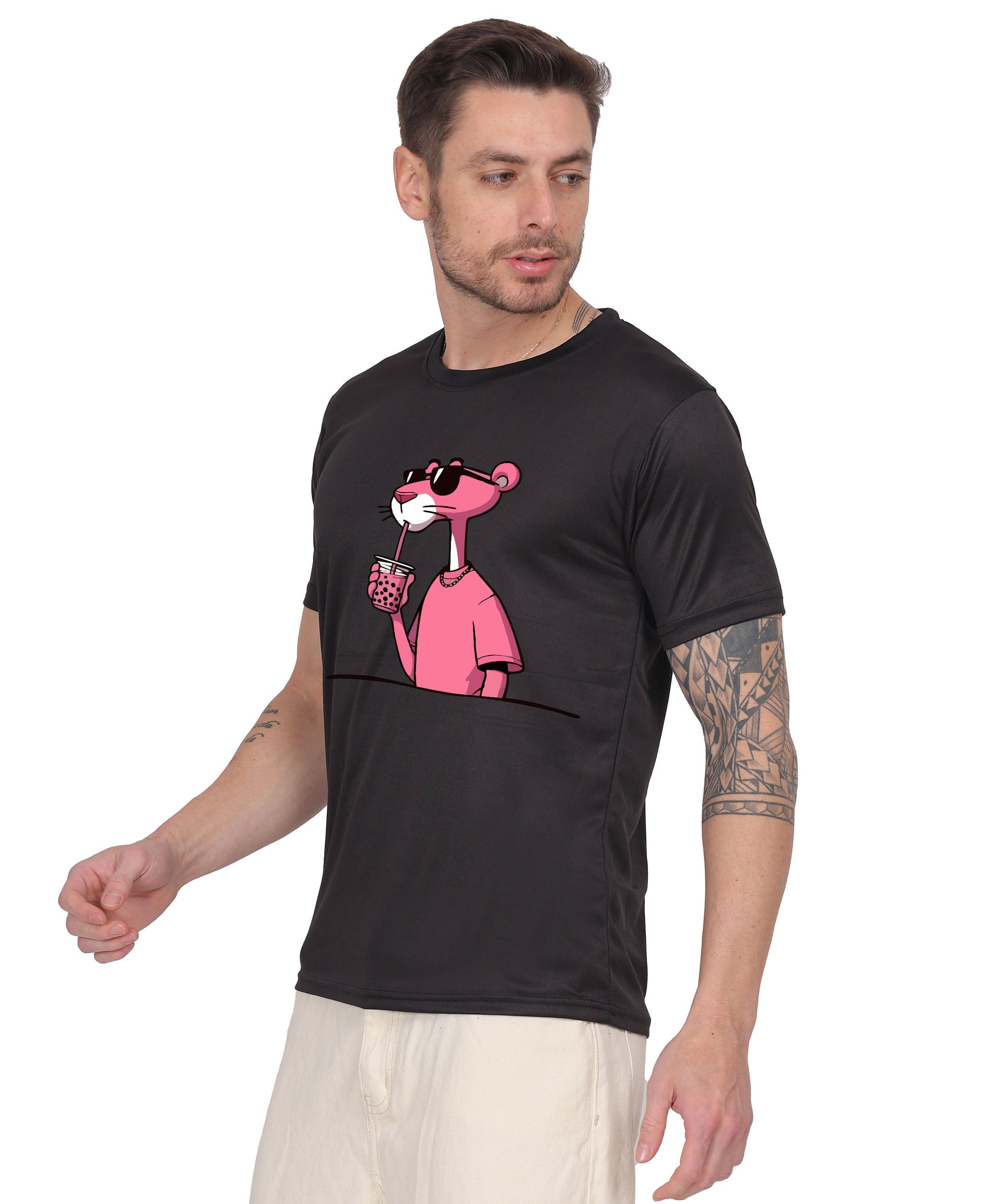 Cool Pink Panther Graphic T-Shirt, Black Cotton, Casual Round Neck